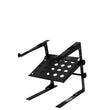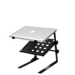 Gorilla GLS-02 is a professional quality DJ laptop stand that has an additional lower shelf for audio interfaces, external hard drives, audio recorders etc. This compact, portable laptop stand is quick and easy to assemble and includes everything you need for free-standing use or for clamping to your deckstand or flight case.