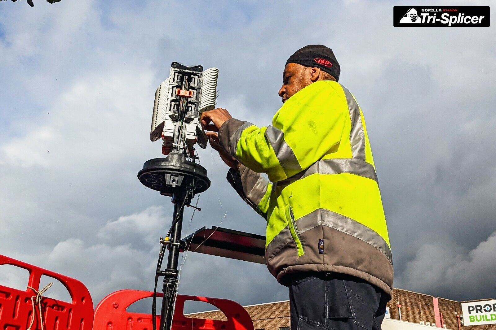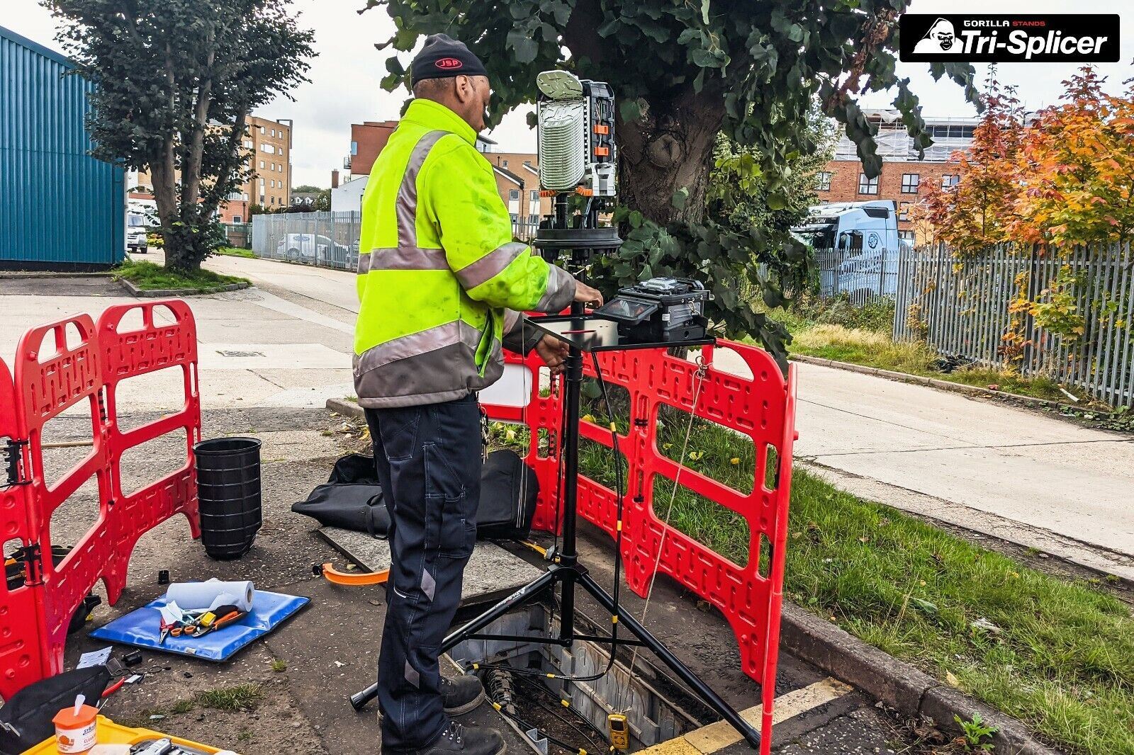The Tri-Splicer is a clever workstation tripod stand system for the Fibre Optic installation industry. This Tri Splicer stand will easily straddle most chambers with the node securely positioned on the top, followed by the all-important splicer on the shelf below, making the fibre splicing job a breeze!